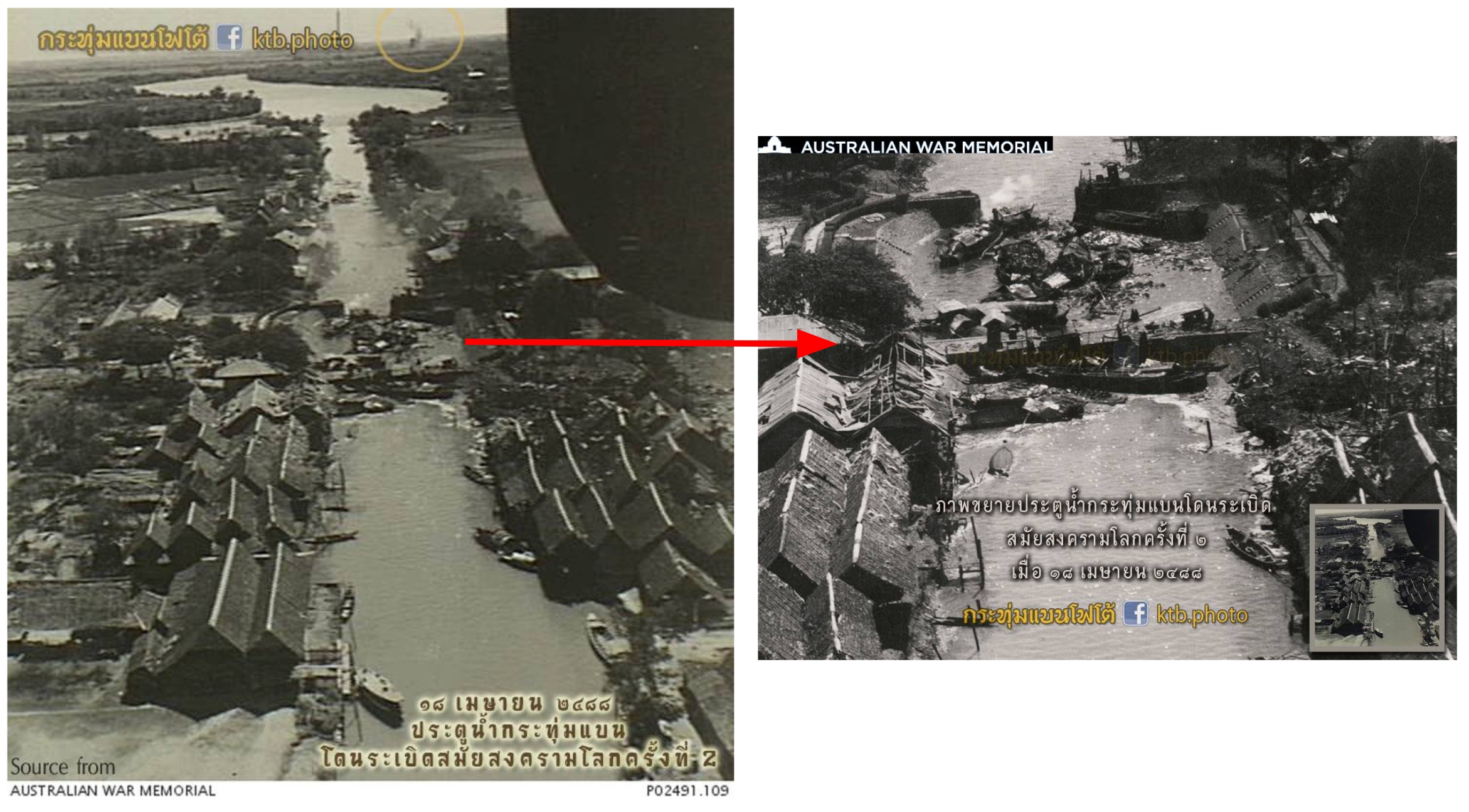 คุณลุงท่านหนึ่งย่านประตูน้ำอ่างทอง (จำชื่อท่านไม่ได้ต้องขออภัยครับ) อายุราว 70-80 ปี บ้านอยู่ข้างประตูน้ำอ่างทอง ได้เล่าว่า มีเครื่องบินบางลำมันคงกะระยะผิดบนิต่ำเกินไป พอทิ้งระเบิดโดยลูกหลงจากแรงระเบิดดันน้ำมาโดนจนเครื่องบินตกเลย มีคนเสียชีวิตด้วย ระเบิดบางลูกก็ทิ้งลงมาด้านไม่ระเบิด จนตอนหลังต้องมีการลากจูงไปทิ้งและทำลายไว้กลางทุ่ง ไกลๆ ผู้คน